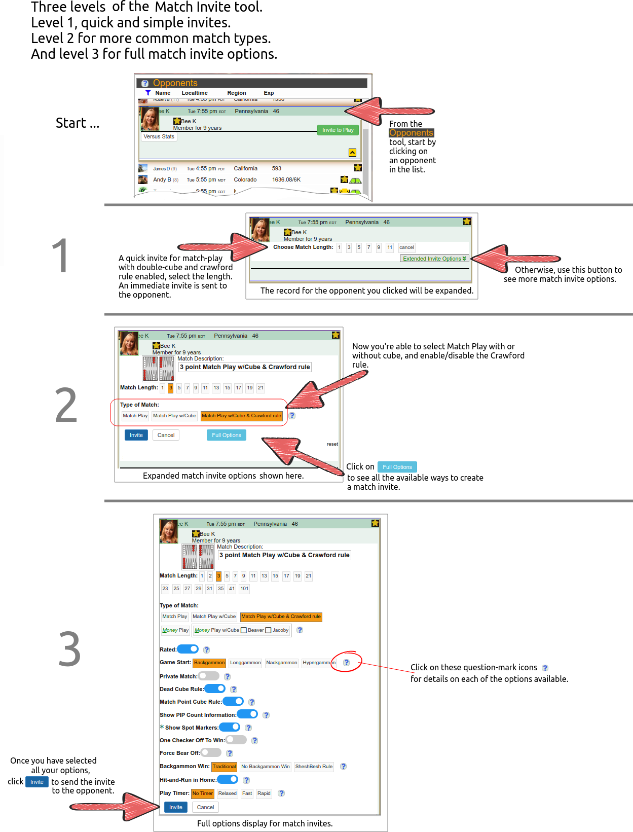 To invite an opponent to a new match, one way is by using the Match Invite Tool.